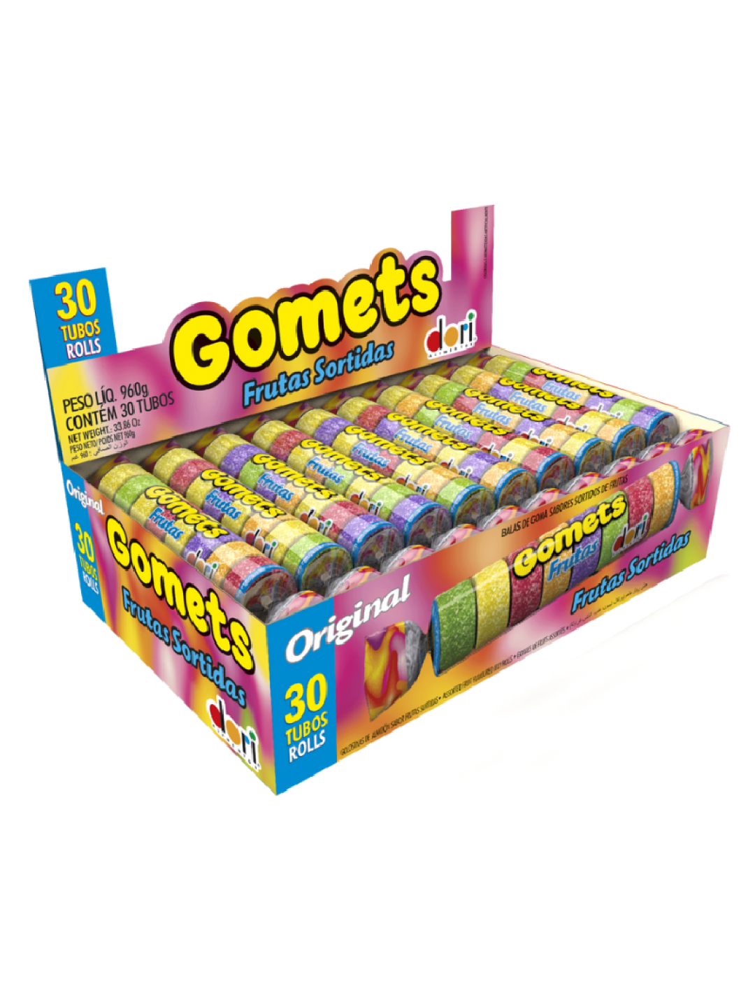 Bala Goma Tubo Frutas Sort. Display C/ 30 Tubos