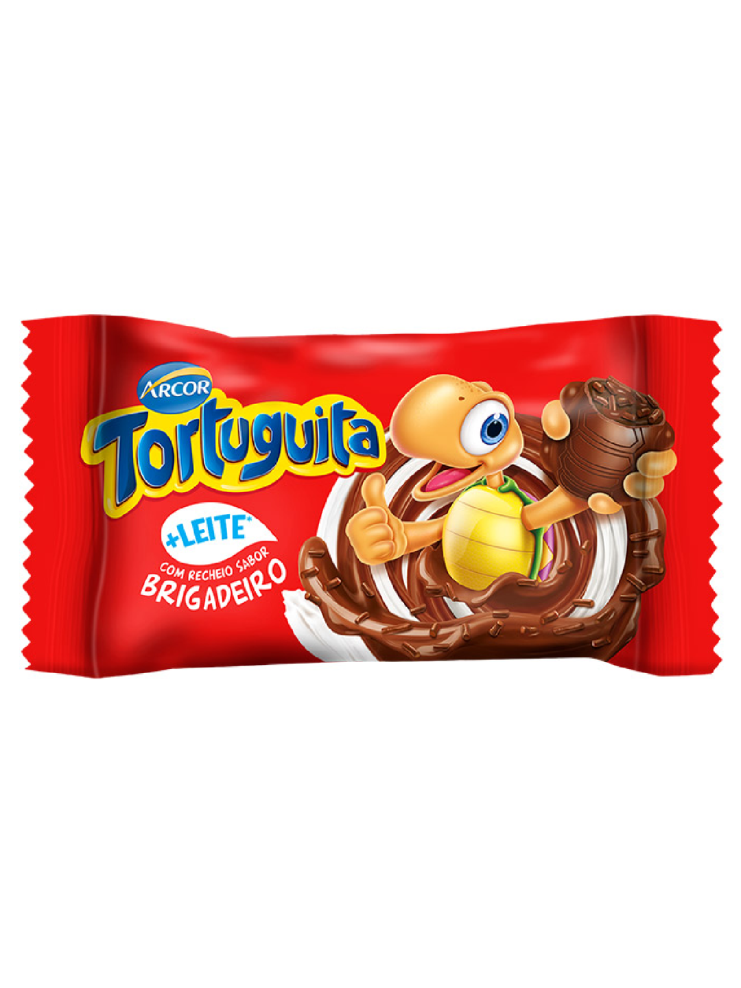 A Tortuguita Brigadeiro é comporta de uma casca de chocolate ao leite, com recheio sabor brigadeiro.