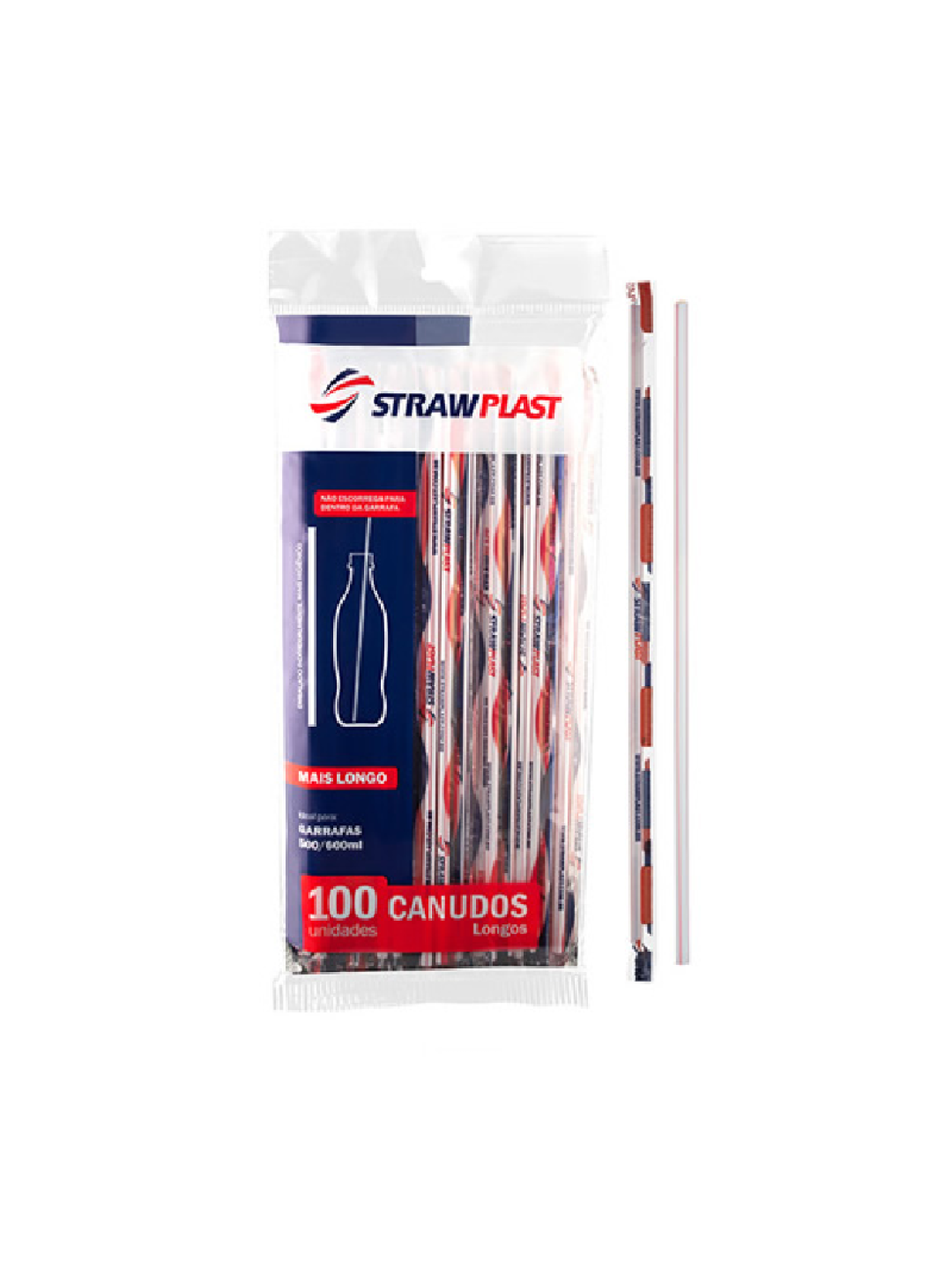 Canudo Sache Longo 5Mm 26Cm Br C/Vermelho Cs316 Strawplast - Pacote C/100 Un