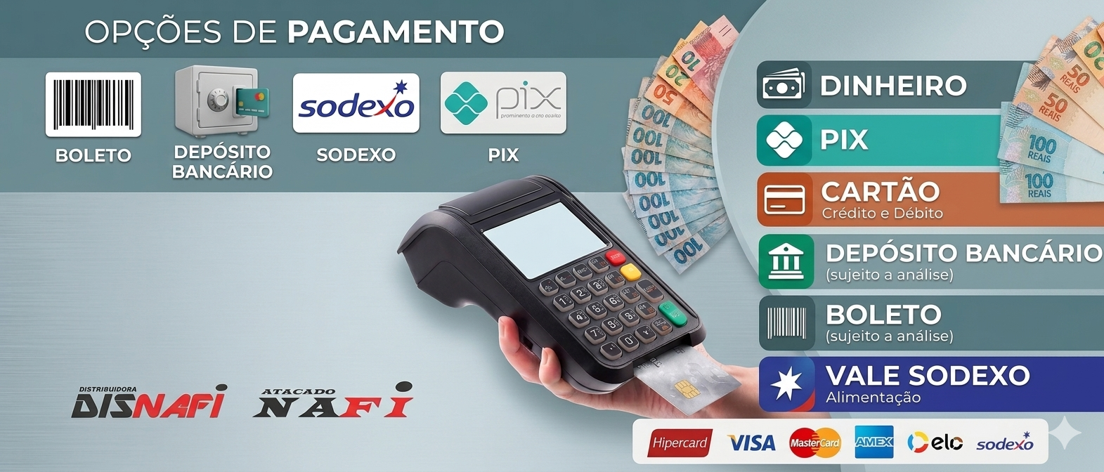 NAFI Comércio Atacadista Ltda Epp. - CNPJ: 10.788.485/0001-83 - Inscrição Estadual: 255.868.359 / Avenida Santa Catarina, Nº 1209 / Imbituba - SC - CEP: 88780-000 / Telefone: 48 3255-0824 / lojavirtual@nafi.com.br