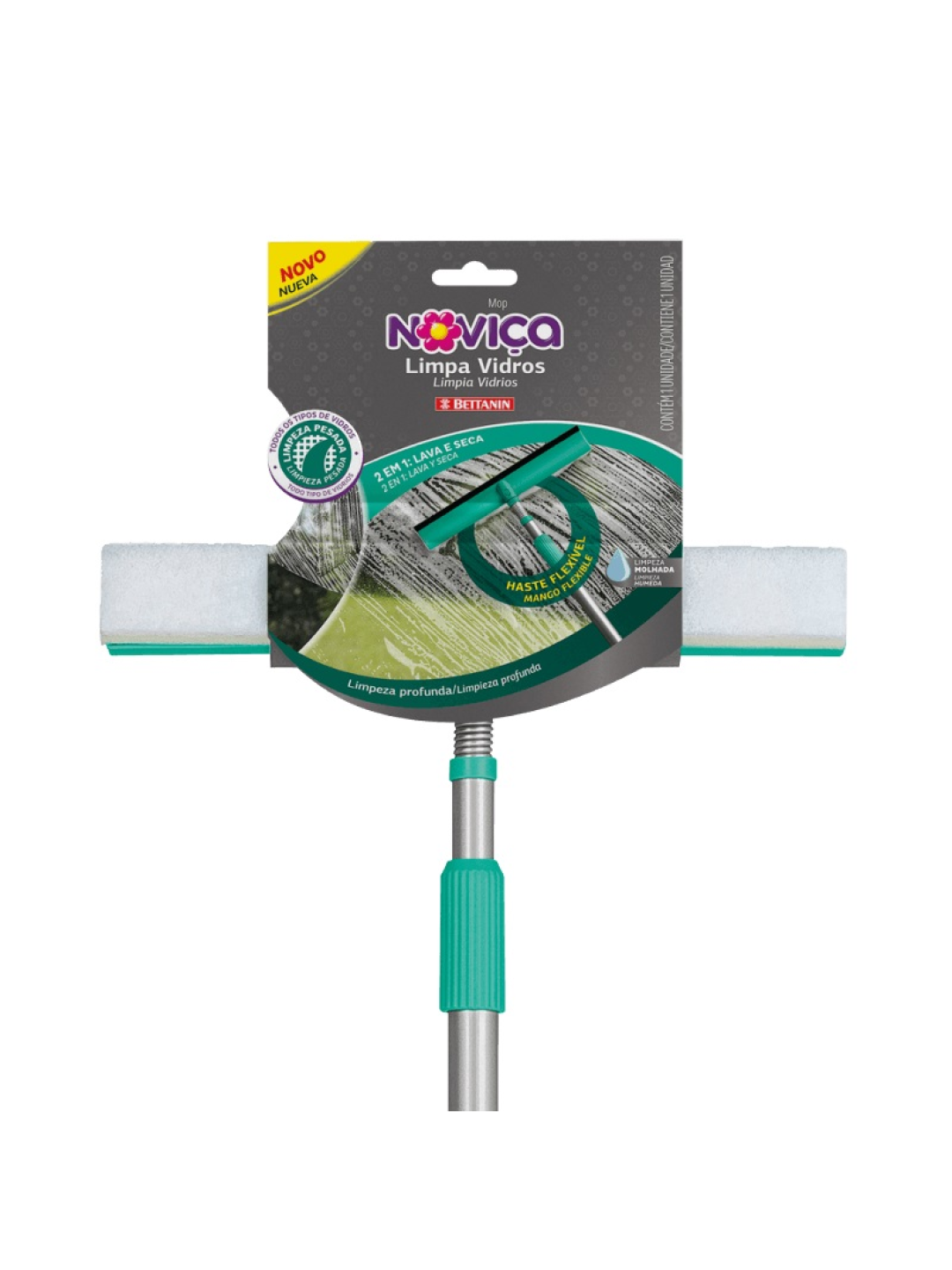 Mop Noviça Limpa Vidros Lava E Seca C/Cabo Bettanin - Unidade