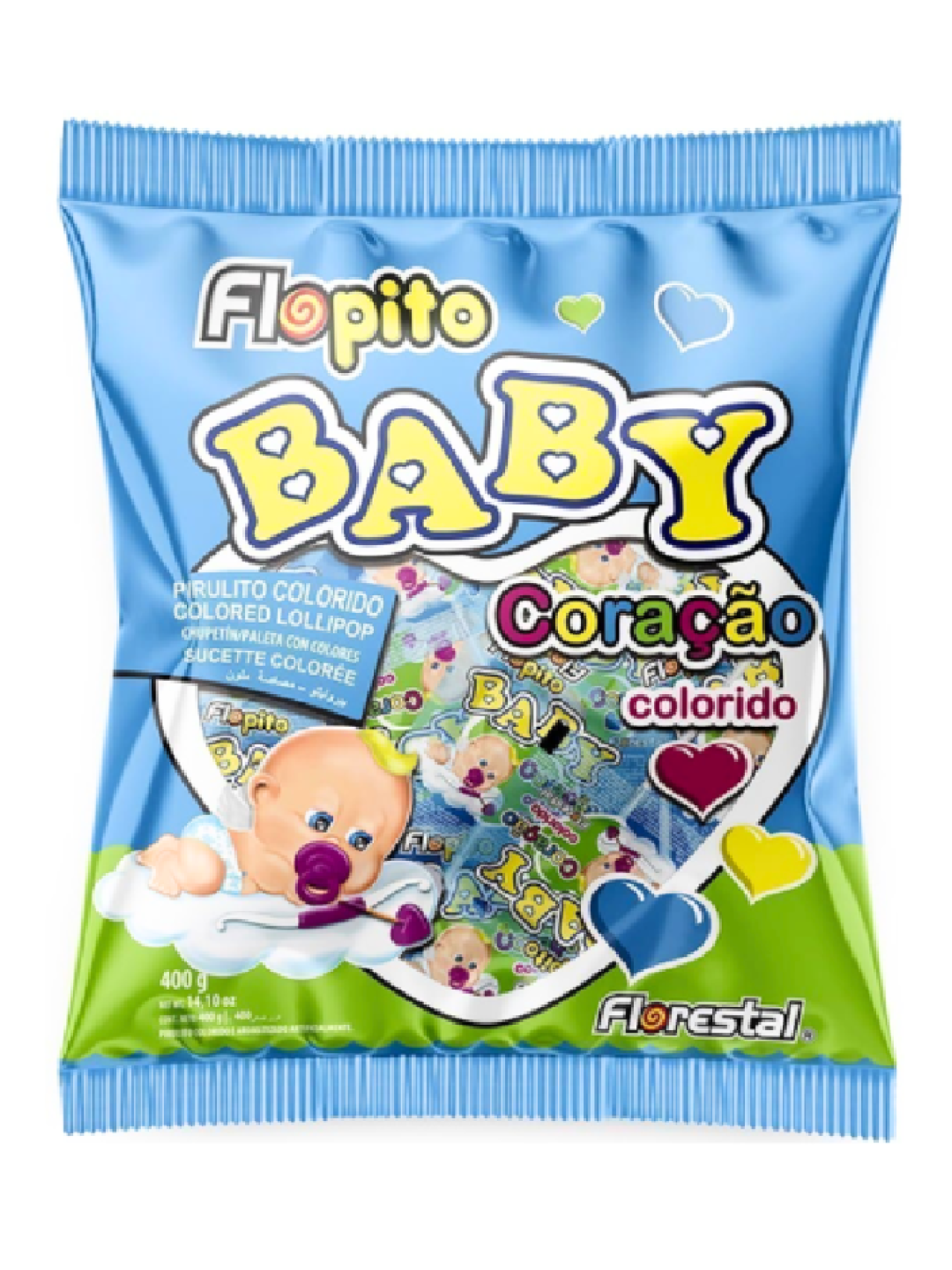 Pirulito Flopito Baby Coração Colorido 200Gr C/50 Un Florestal - Pacote