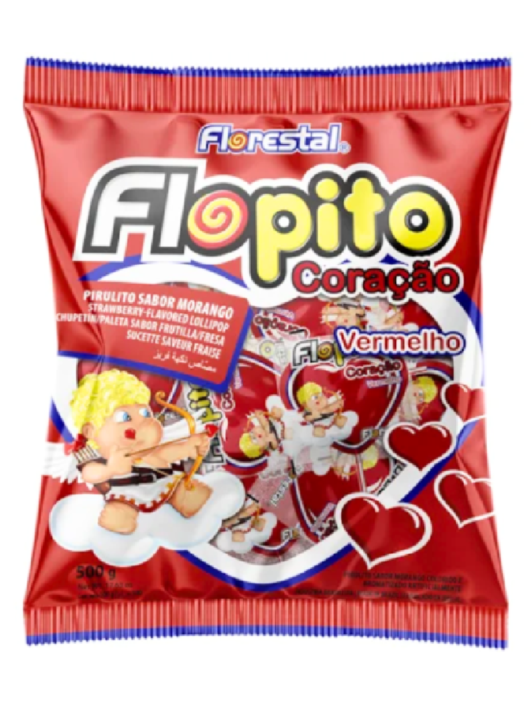 Pirulito Flopito Coração Morango 500Gr Florestal - Pacote