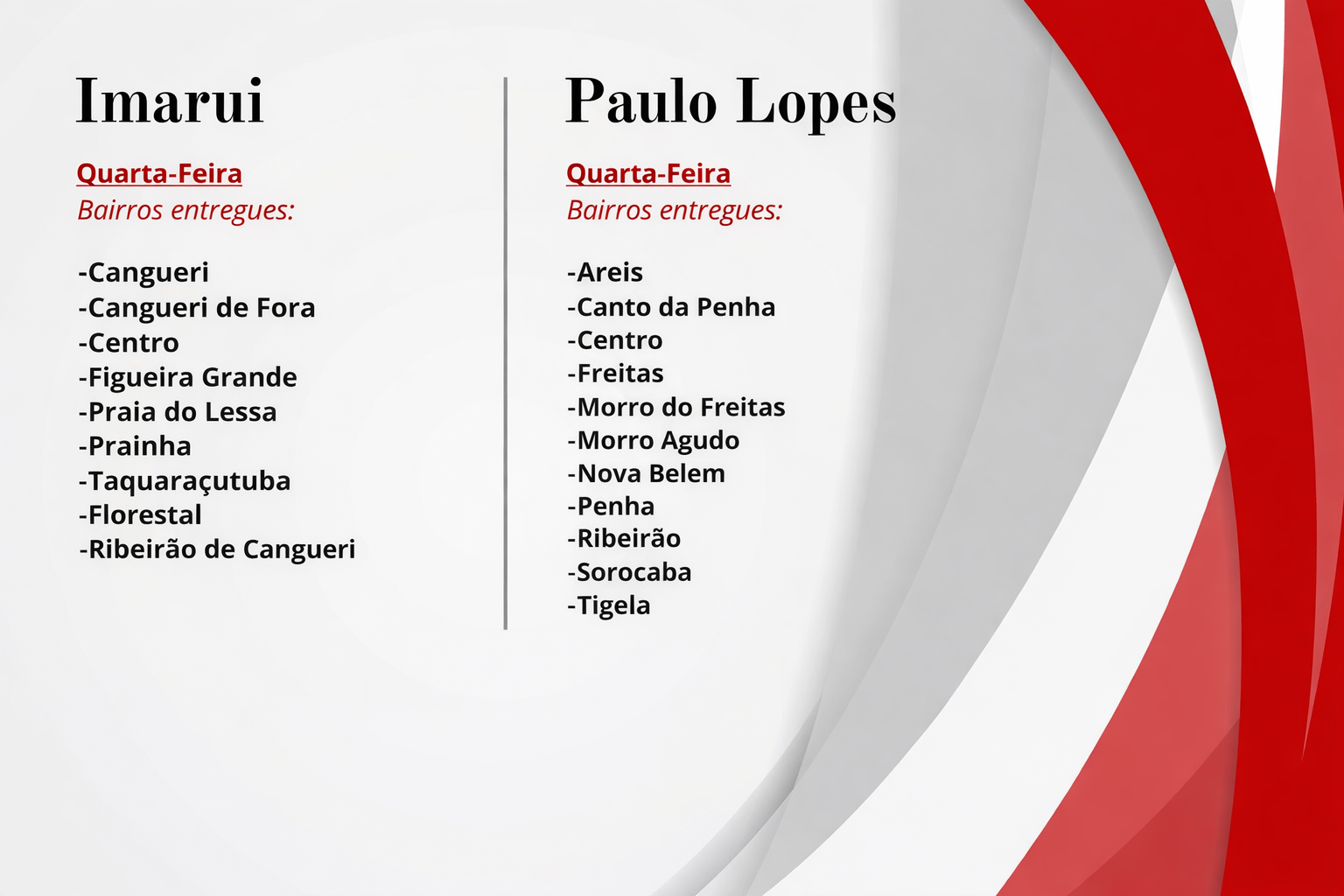 Atendimento semanal conforme dia e bairro (ver tabela de rotas ABAIXO).
